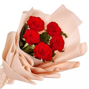 İçerik: 5 kırmızı gül, yükseklik – 6 0 cm ve süsleme